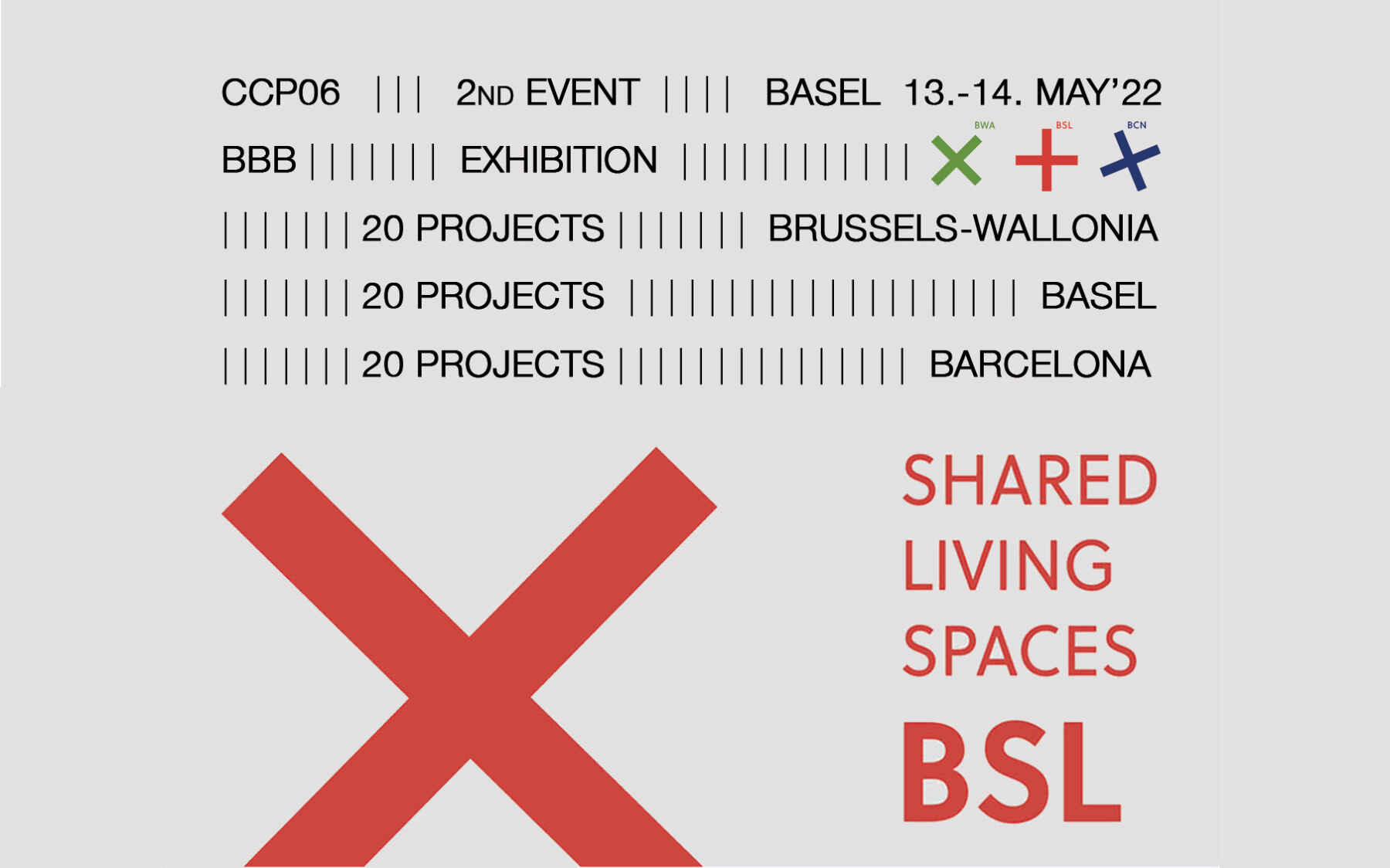 Das Cities Connection Project ist ein Verbinder zwischen Städten und ihrer Architektur, das von den Architekten Nicola Regusci und Xavier Bustos geschaffen wurde, mit dem Ziel, Synergien zwischen Architekten, Kulturagenten, Institutionen und Universitäten in Europäischen Städten zu schaffen. “Shared living spaces» ist das Thema, das für diese 6. Ausgabe von CCP gewählt wurde, die drei Städte/Regionen verbinden wird: die Wallonia Brussels Federation, Basel und Barcelona, durch eine Ausstellung mit 60 ausgewählten Projekten. CCP gibt einen Katalog heraus und organisiert Vorträge und Führungen zu Projekten und Büros.